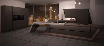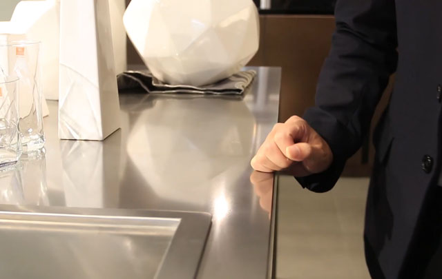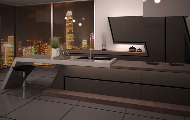 研发、设计团队希望能为消费者带来简洁而不简单的生活,在使用的过程中带来方便,同时保持着锐气、进取和拥有稳定的生活。设计上打破方方正正传统橱柜形象,采用不规则图形、平行四边形、梯形组合,让人感觉锐气、进取又稳重。大量运用黄金分割比,同时考虑体现不锈钢的质感,搭配上考虑质地坚硬的西班牙岩板,将工业产品与自然产品恰当融合,设计上橱柜上考虑运用黑线打破大面积面板,又能起到拉手的作用。
