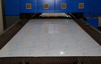 此为不锈钢橱柜板材生产的第一步,法迪奥采用304不锈钢板材为原料,运用激光切割机进行精准切割。下料后依据一物一码规则生成编码标签,相当于每一块不锈钢板的身份证号,作为每道工序的识别依据,其要求严格准确。