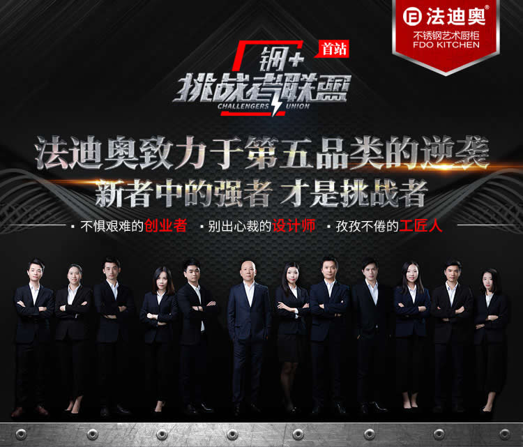 采访法迪奥核心团队过程中,一个有着“法迪奥”标签的挑战征程逐渐立体、鲜活起来,研发、工艺、设计,每个版块都因不锈钢而变得与众不同,一路见证法迪奥从品牌成立到发展的工艺技术主管李金祺、一路追求领先的研发中心总监温益导、为追求人性化设计的外观设计主管梁健明及设计师郭旭然,有嘴唇皲裂仍坚持培训的营销中心培训部主管何松......当一个核心团队以专业和敬业共同协作时,我们才真正理解,为何法迪奥不锈钢艺术厨柜风格那样信马由缰,可以那样肆意征服消费者。