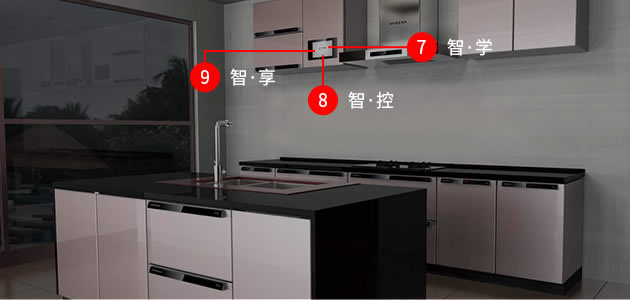 烟灶联动系统,点火启动烟机抽风,关火烟机延时关闭,燃气泄漏时报警并关闭燃气主阀,开启烟机抽风功能。