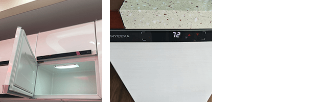 预设了冷藏、冷冻功能模块,厨用保鲜食材进入厨房单独储藏。零下12-27℃智能冷冻系统,0-17℃柜体内智能冷藏系统,30秒柜门未关智能警示等。