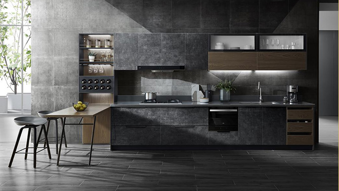 都市丽人主张以人为本, 倡导一种新生活态度,简约的倒角圆弧形吧台设计, 时尚新颖,电器高柜的使用令空间得到了扩展和延伸。 是关注时尚潮流、乐于展示个体审美趣味、注重细节、安全、健康的90后消费者首选。
