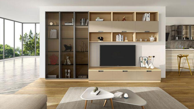 布拉格阳光系列以创造简约舒适,时尚的居家生活,释放工作、生活的压力的新生活理念为主体。 营造出舒适,温馨的家具格调,为人们在紧张忙碌的都市生活中开辟一块还原真我的自由空间。 在面板花色选择上,主推木色的秋思花色运用在柜身, 香桃可可运用在背板、抽面进行撞色处理,配以高柜铝合金门的应用,增加品质感,舒适生活,信手可得。